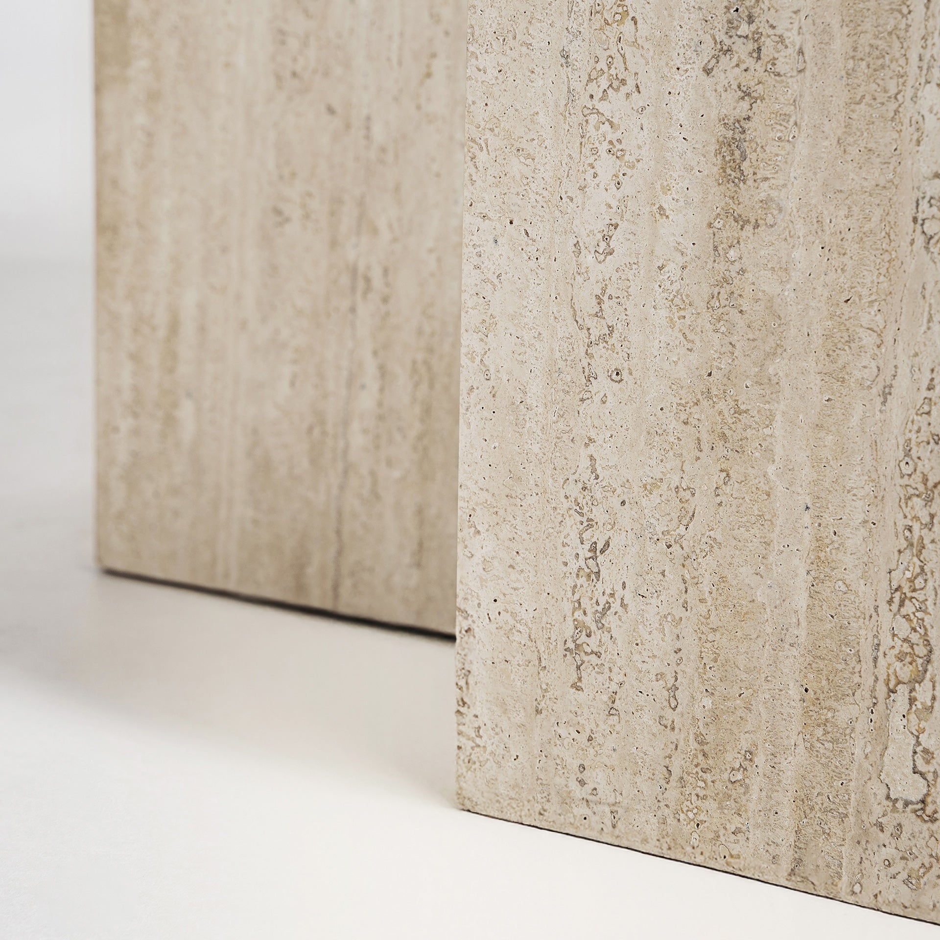 Da Travertin ein edles Naturmaterial ist, sind feine Abweichungen in Farbton und Maserung unvermeidlich und verleihen jedem Stück seinen unverwechselbaren, einzigartigen Charakter.