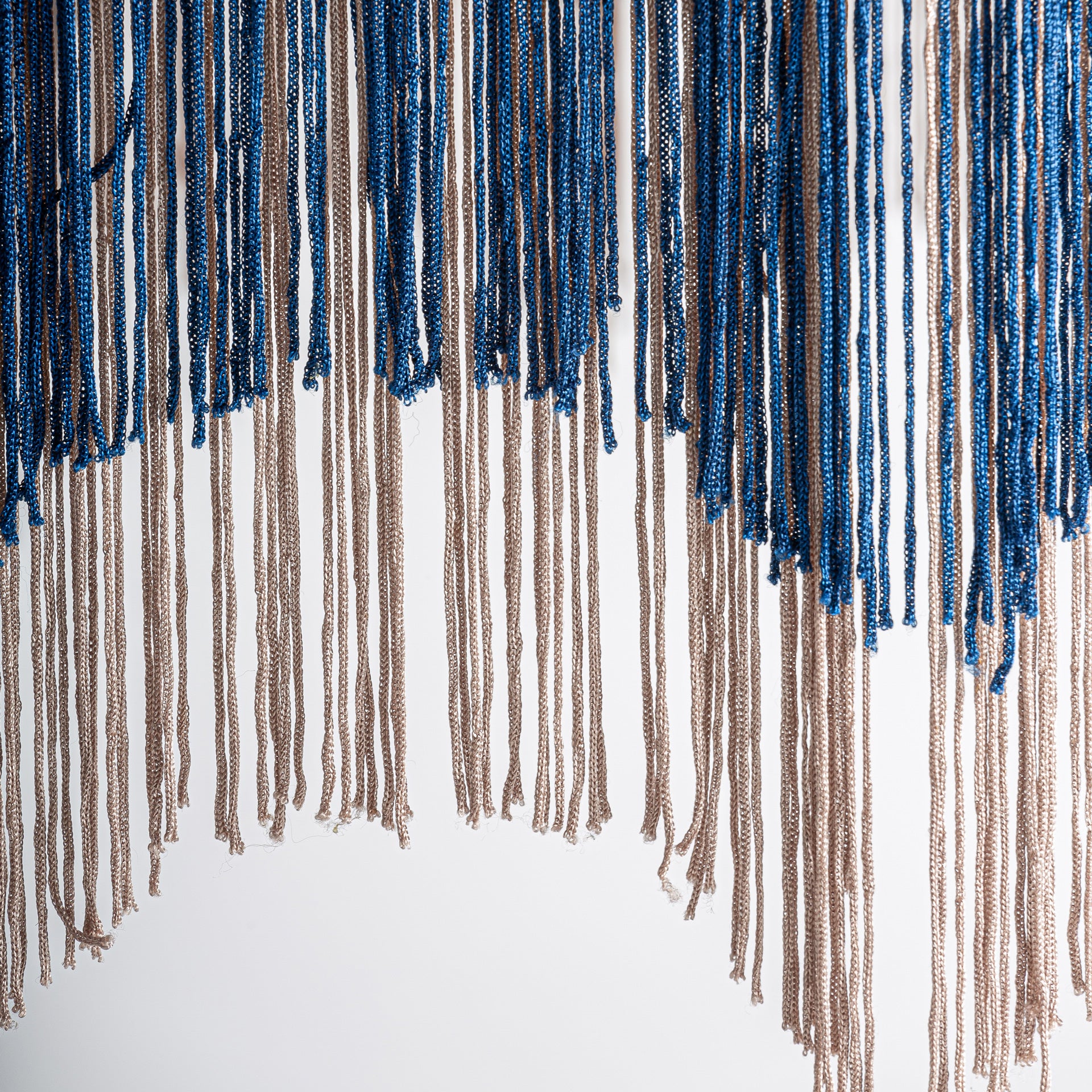 Deckenleuchte aus Jute mit Fransen in Beige und Blau – Boho Design