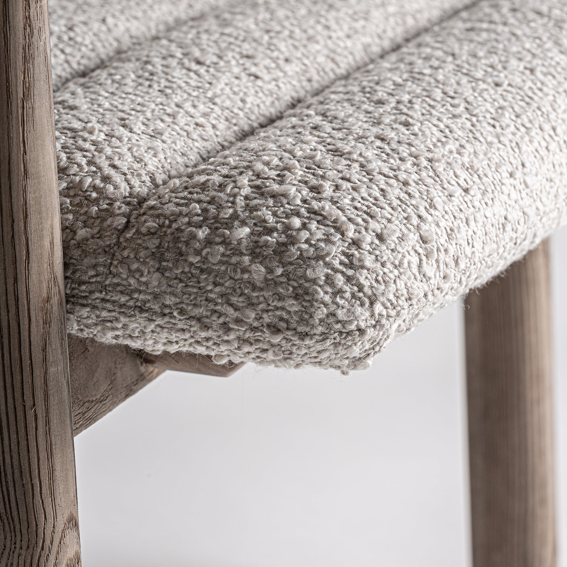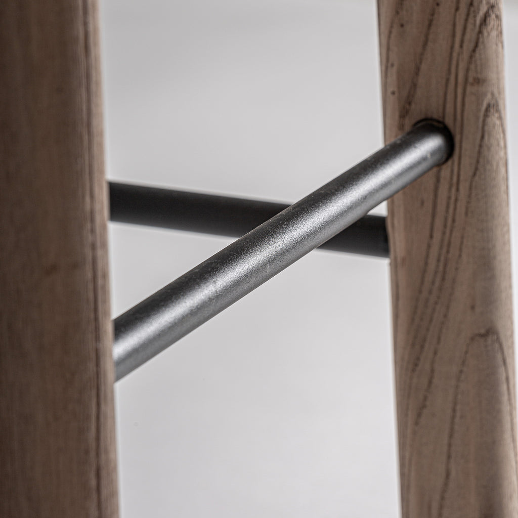 Dieser handgefertigte Barhocker von VICALDESIGN, entworfen von estudi{H}ac, vereint modernes Design mit komfortabler Polsterung. Die geschwungene Rückenlehne und die beige Sitzfläche sorgen für angenehmes Sitzen, während der Rahmen aus hellem Ulmenholz Stabilität und Eleganz bietet. Ideal für Kücheninseln, Bartheken oder moderne Wohnbereiche, die Stil und Funktionalität verbinden.