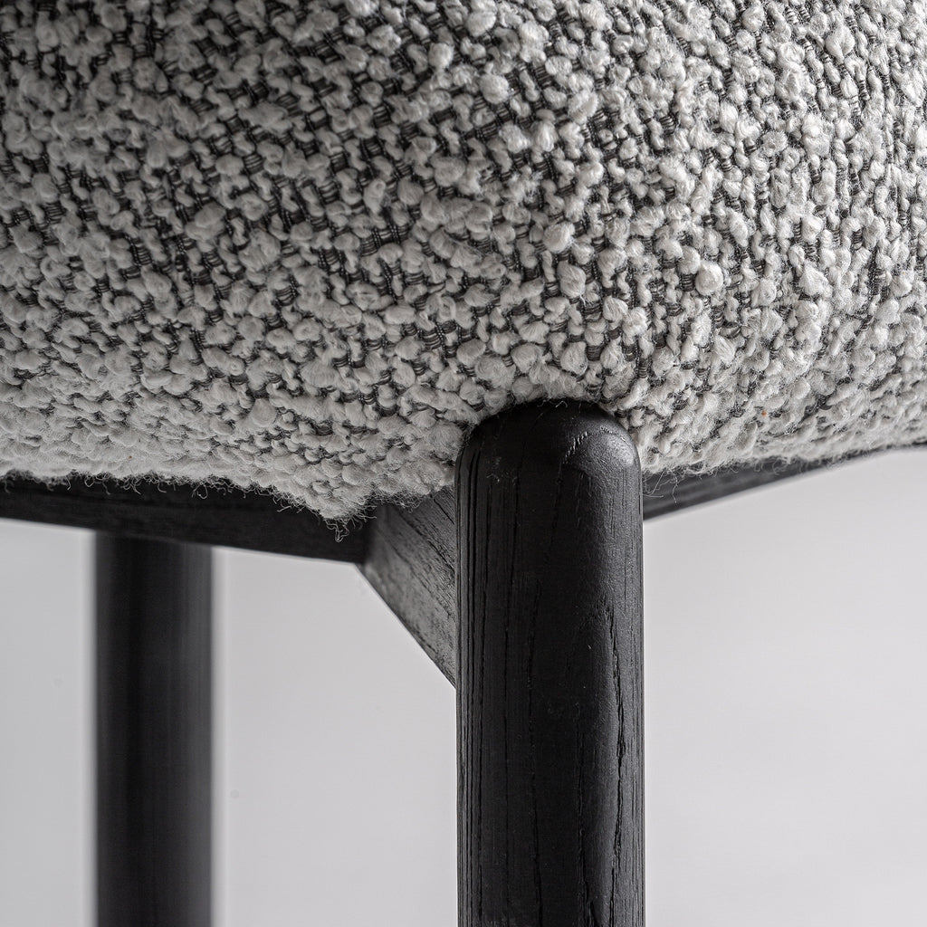 Designer Esszimmerstuhl Jacquard von VICALDESIGN in Schwarz-Grau mit Ulmenholzgestell und gepolsterter Sitzfläche. Modernes, umhüllendes Design sorgt für Komfort und setzt stilvolle Akzente im Esszimmer, Wohnbereich oder Büro. Hochwertige Materialien treffen auf zeitlose Eleganz.