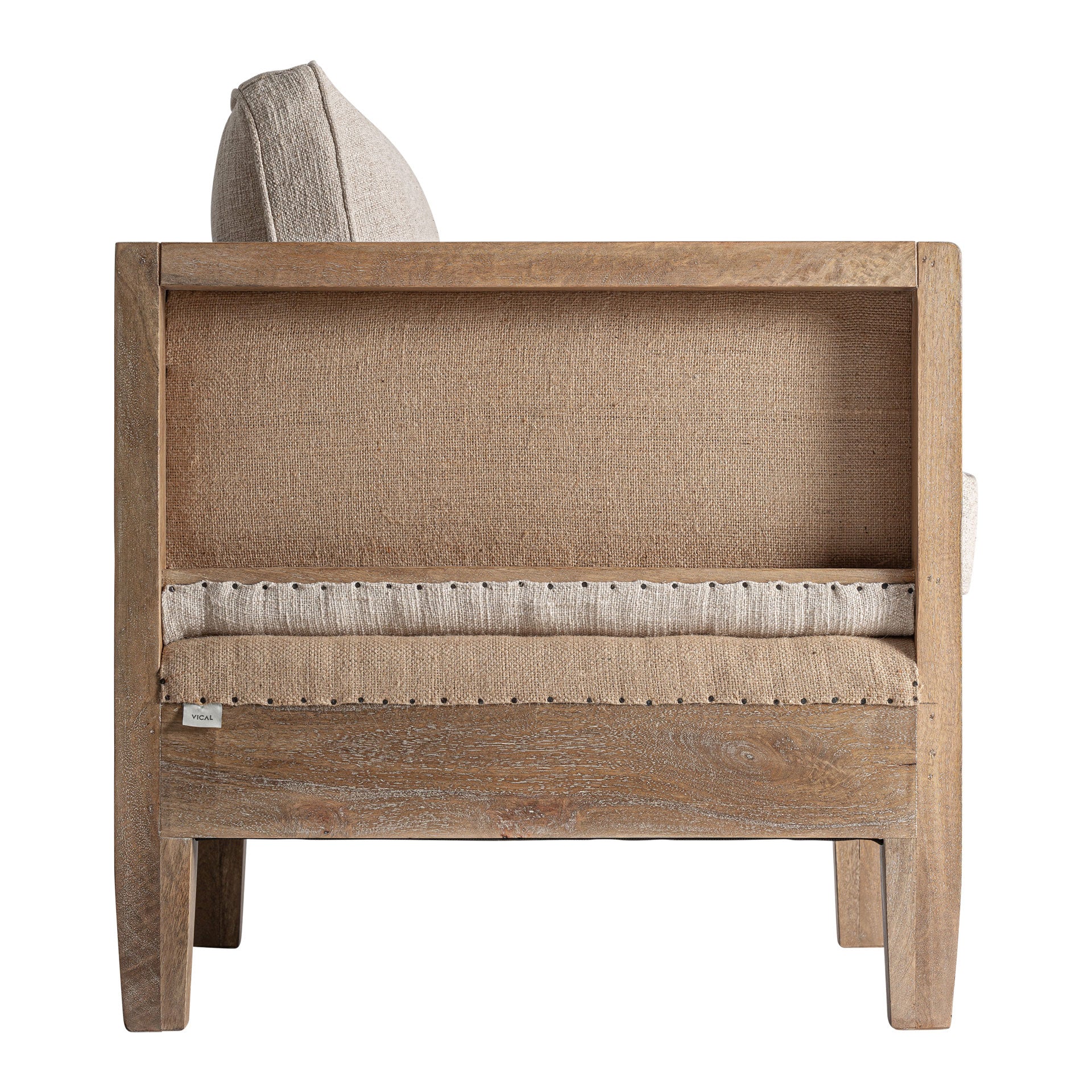Beiger Sessel aus Birkenholz mit Leinen & Jute
