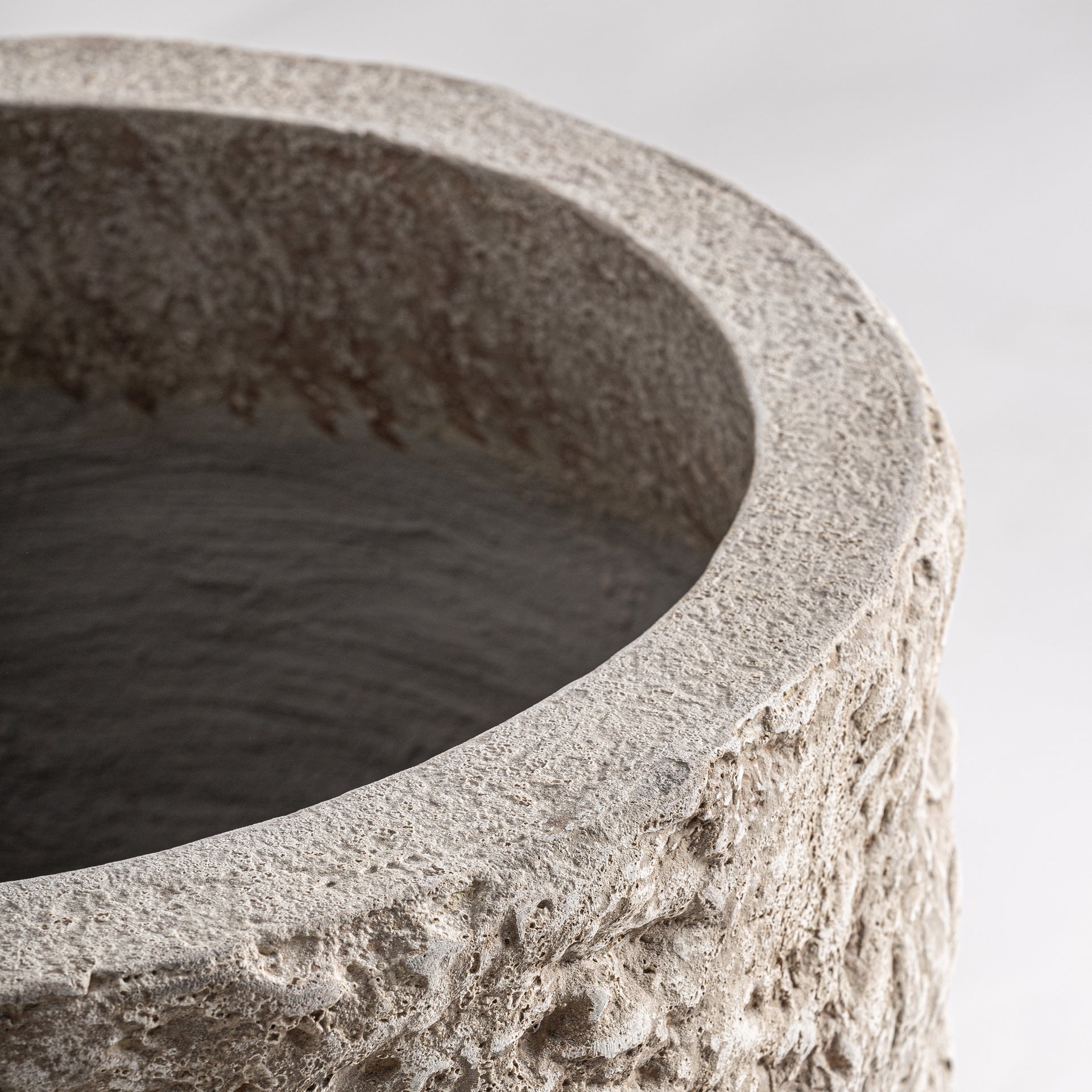 Diese Contemporary Vase besticht durch ihr organisches Relief und ihren gebrochen weißen Farbton. Gefertigt aus einer hochwertigen Kombination aus Beton und Fiberglas wirkt sie zugleich kraftvoll und elegant. Die strukturierte Oberfläche verleiht der Vase Tiefe und eine skulpturale Präsenz, während der ruhige Off-White-Ton sich harmonisch in moderne Wohnkonzepte einfügt. Ideal als Solitärvase oder dekoratives Objekt in Wohnbereichen, Fluren oder offenen Räumen setzt sie einen architektonischen Akzent mit zeitloser Wirkung.