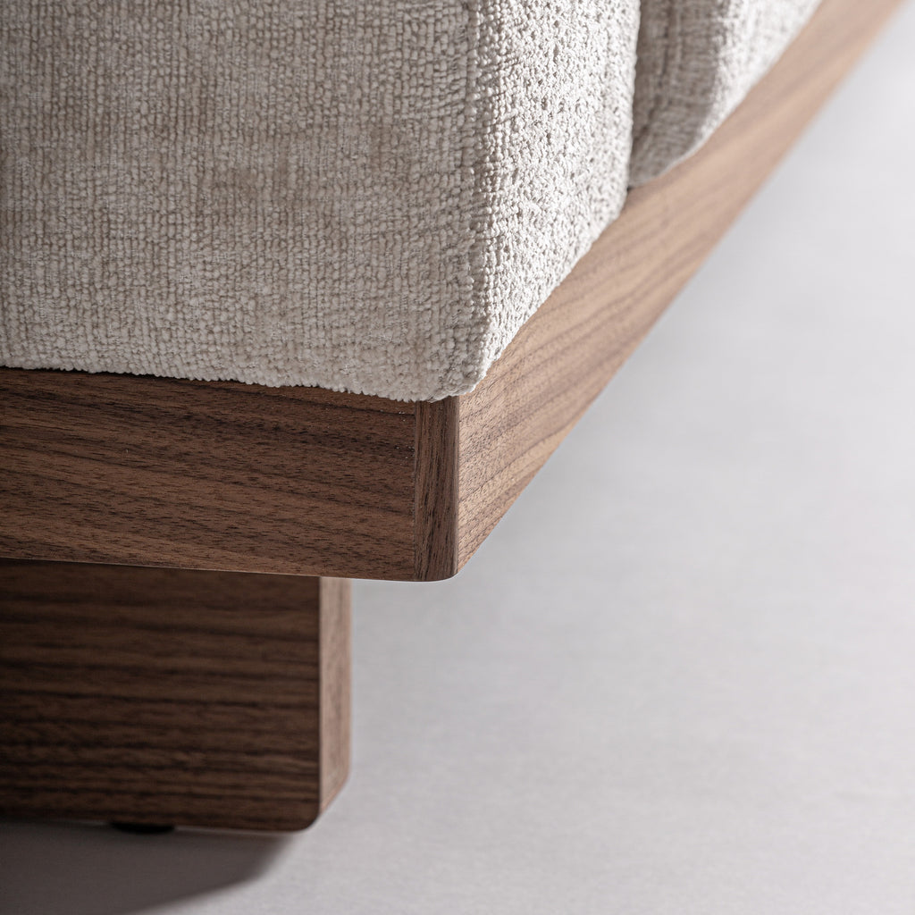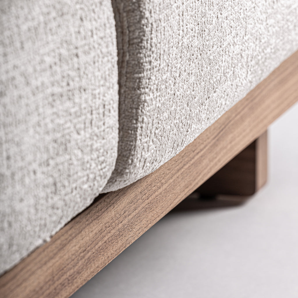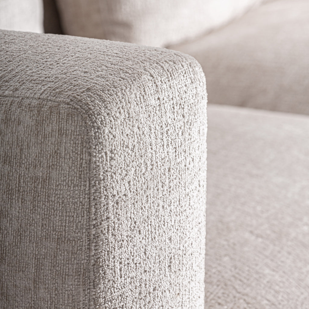 Dieses elegante Ecksofa Modul vereint lässige Lounge Atmosphäre mit modernem Contemporary Stil. Der taupefarbene Stoff harmoniert mit dem warmen Braun des MDF-Gestells und sorgt gemeinsam mit der weichen Polsterung aus Schaumstoff für höchsten Komfort. Ideal für stilvolle Wohnbereiche, die Eleganz und Entspannung verbinden möchten.