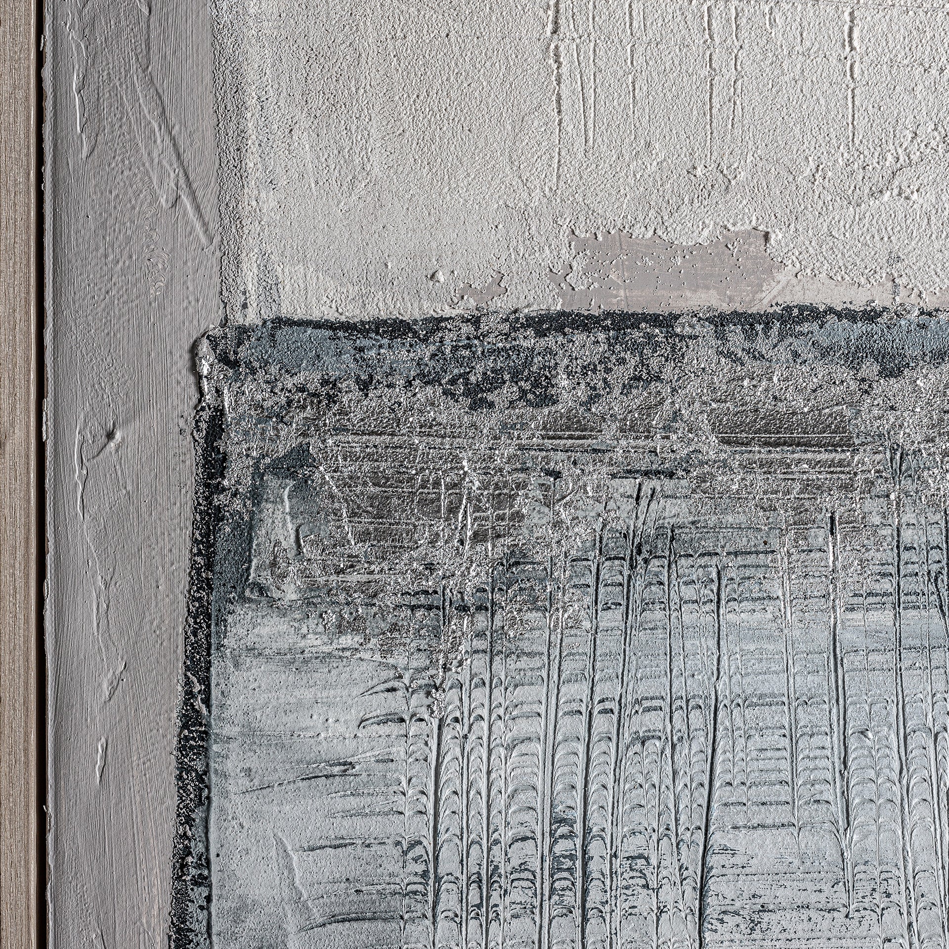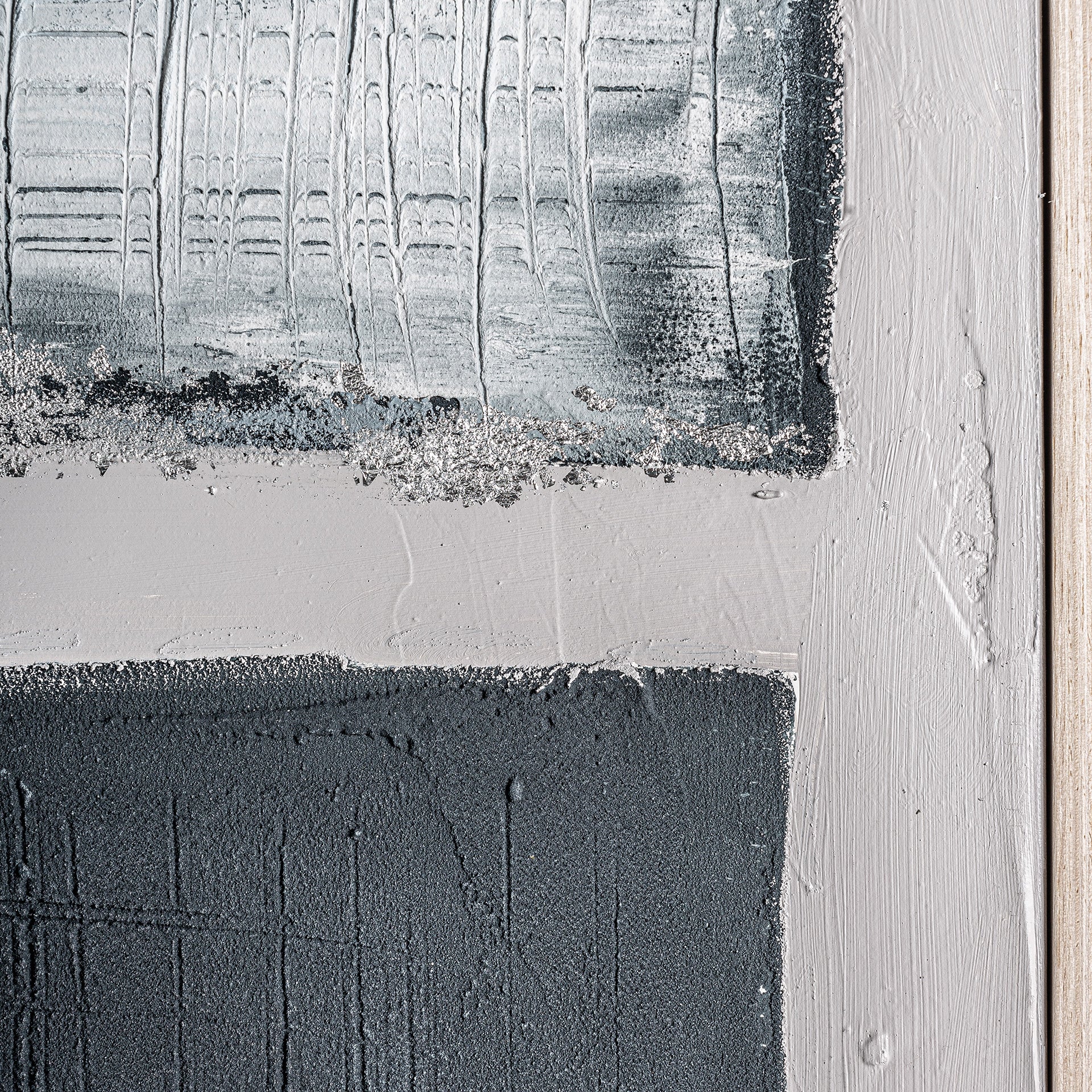 Dieses zeitgenössische Kunstwerk kombiniert Grau- und Blautöne auf hochwertiger Leinwand mit einem Rahmen aus Kiefernholz. Handwerkliche Verarbeitung verleiht dem Werk Präsenz und ausgewogene Komposition, die jedem Raum subtil Eleganz und Stil verleiht. Ein einzigartiges Highlight für Wohnzimmer, Lounge oder Arbeitsbereich, das modernes Interieur aufwertet.