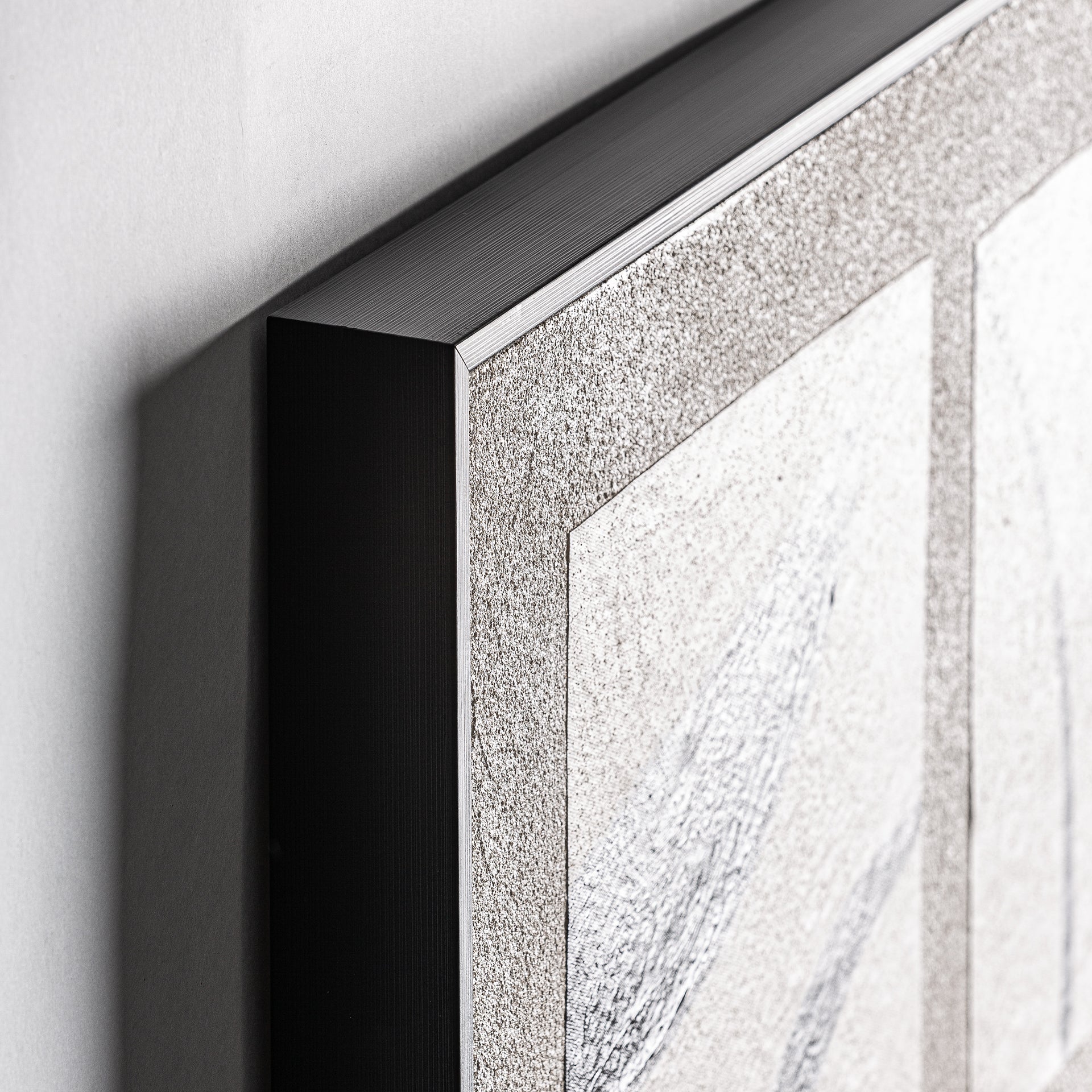 Dieses handgefertigte Leinwandbild im Contemporary-Stil besticht durch seine klare Schwarz-Weiss-Komposition und den eleganten schwarzen Holzrahmen. Das reduzierte Design fügt sich mühelos in moderne Wohn- und Objektinterieurs ein und setzt dezente, stilvolle Akzente. Jedes Stück ist ein Unikat und überzeugt durch seine ausgewogene Präsenz und hochwertige Verarbeitung.