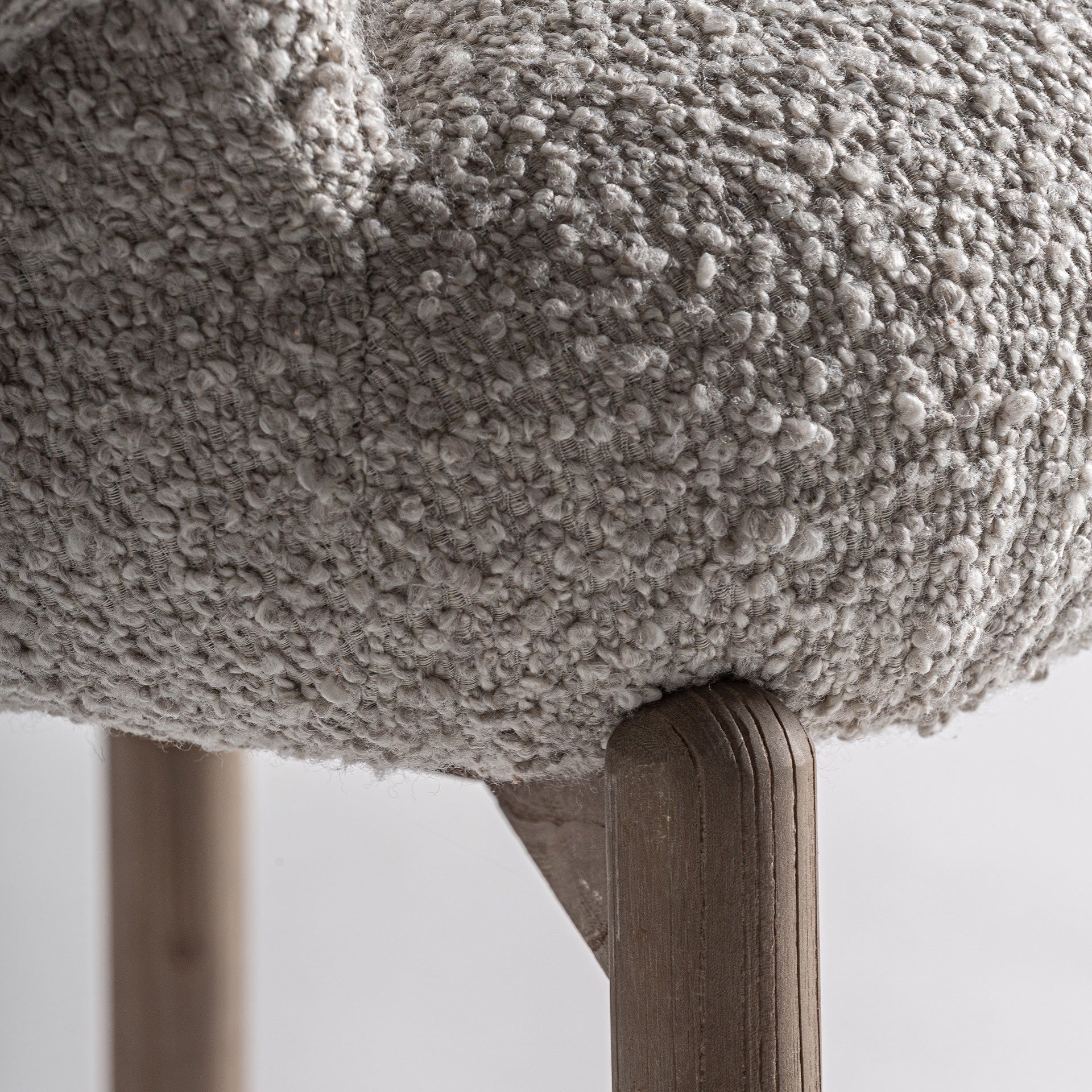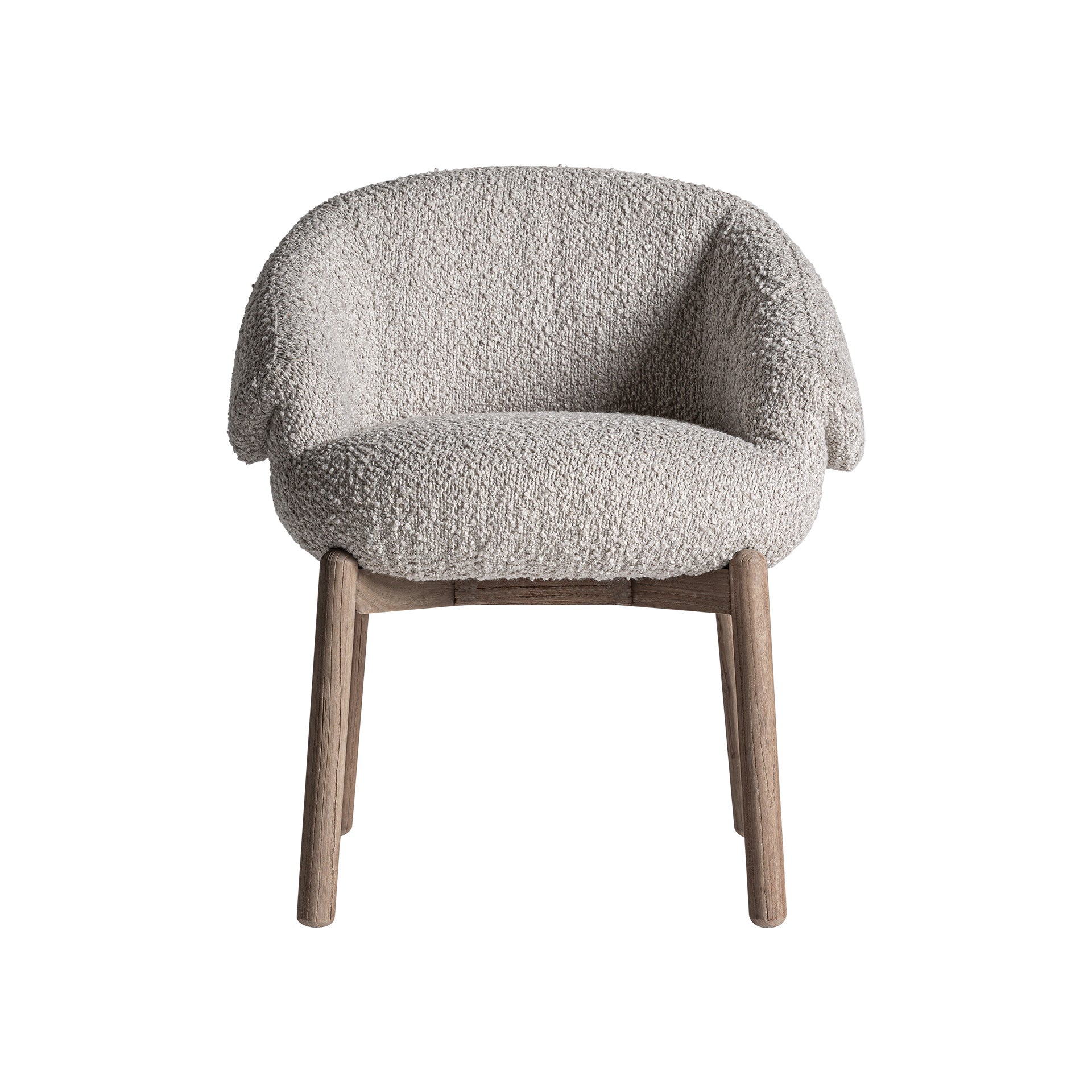 Dieser handgefertigte Esszimmerstuhl von VICALDESIGN, entworfen von estudi{H}ac, verbindet elegantes Design mit hohem Komfort. Der Rahmen aus Ulmenholz sorgt für Stabilität, während die weiche graue Polsterung ein komfortables Sitzgefühl bietet. Mit seiner ergonomischen Form passt der Stuhl ideal an Esstische moderner Interiors und setzt gleichzeitig stilvolle Akzente in jedem Raum.