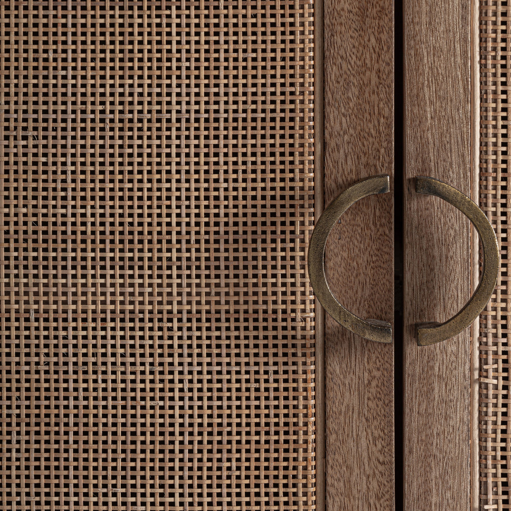 Viertüriges Design Sideboard aus Mangoholz & Rattan