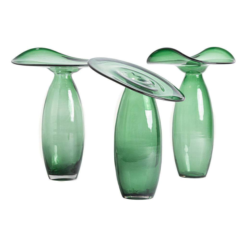 Handgefertigte Glasvase in Grün im Contemporary Stil. Elegante, klare Formgebung macht sie zu einem stilvollen Akzent für Wohnzimmer, Essbereich oder Büro. Perfekt als Einzelstück oder für florale Arrangements.