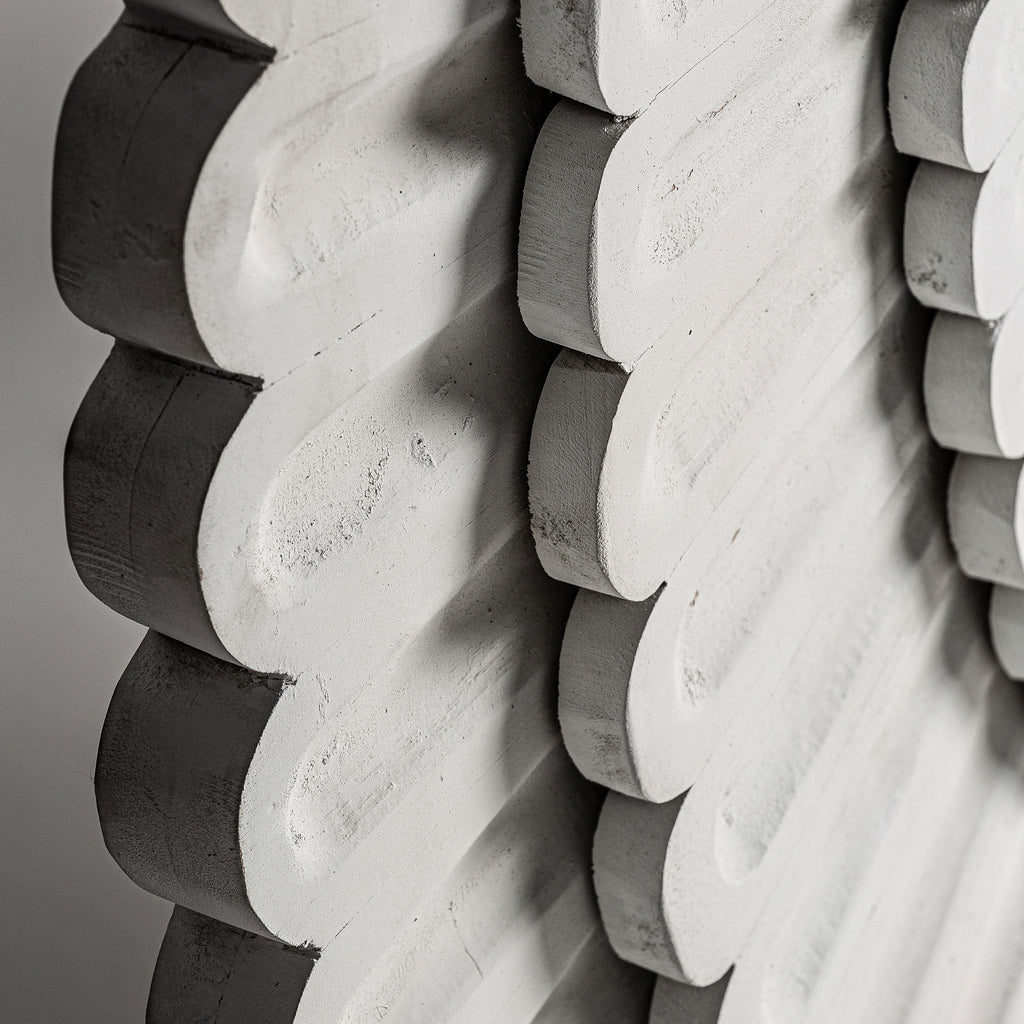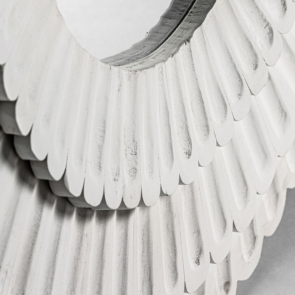 Handgefertigter runder Spiegel mit weiß lackiertem Mangoholzrahmen im eleganten Provence-Stil. Der Spiegel bringt Licht, Leichtigkeit und natürliche Eleganz in Wohnräume, Schlafzimmer oder Flure und setzt stilvolle Akzente in jedem Interieur.