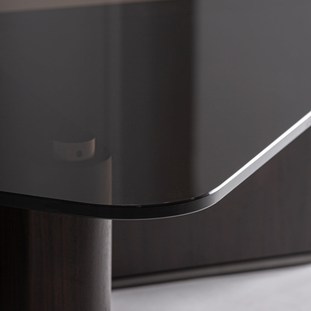 Couchtisch aus Eschenholz und Glas – Schwarz & Grau