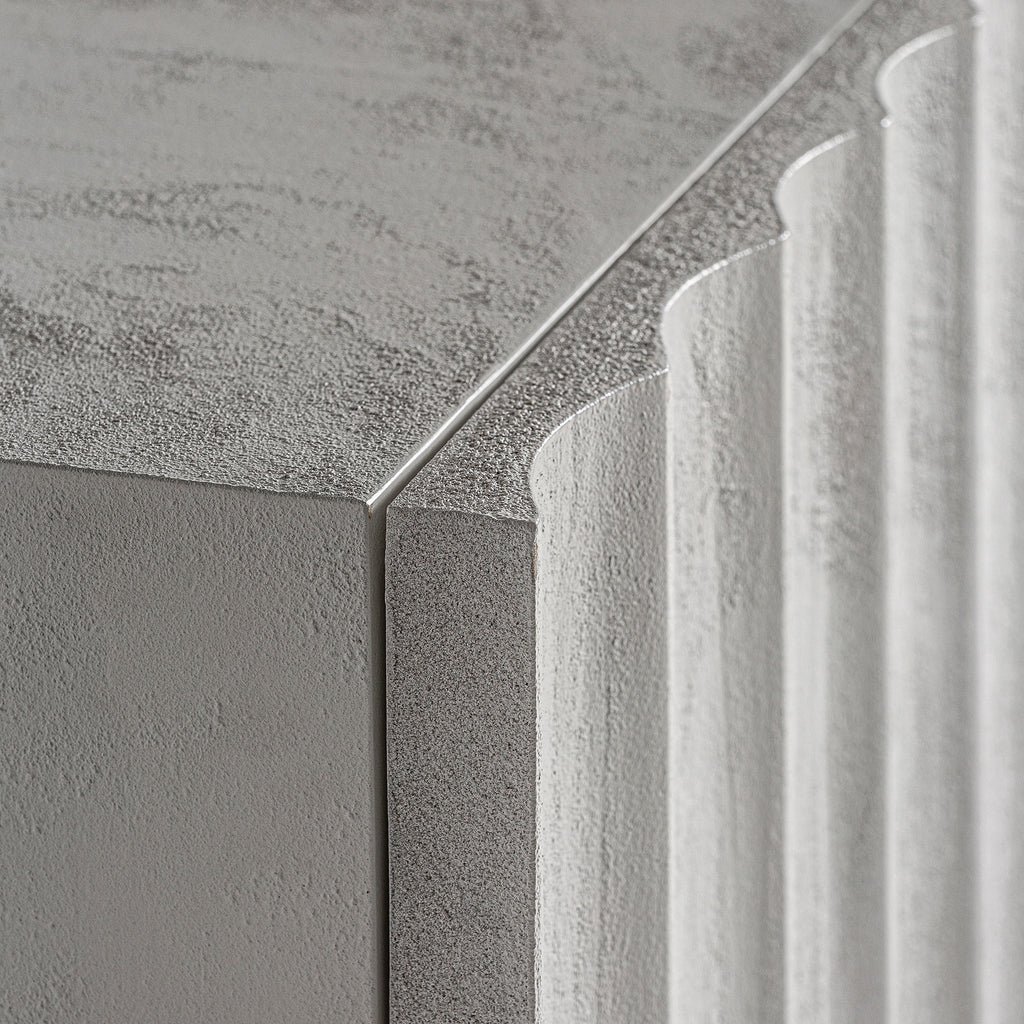 Elegantes Sideboard im Contemporary Design aus hochwertigem Harz und Beton. Die schlichte, klare Form und die raue weiße Oberfläche schaffen einen zeitlosen Fokalpunkt in jedem Wohnraum. Handwerklich präzise gefertigt, verbindet das Möbelstück Stil und Funktion auf harmonische Weise und setzt elegante Akzente in modernen Interieurs.
