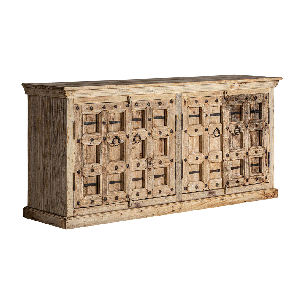 Handgeschnitztes viertüriges Ethnic Sideboard aus Mangoholz