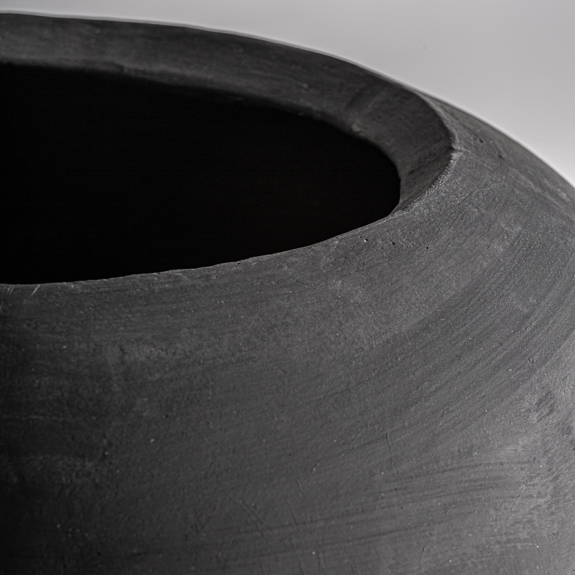 Diese handgefertigte Vase aus tiefschwarzem Beton, verfeinert durch leichtes Fiberglas, vereint moderne Klarheit mit skulpturaler Präsenz. Die matte Oberfläche und die puristische Formgebung verleihen ihr einen markanten, architektonischen Ausdruck. Ein stilvolles Statement-Piece, das zeitgenössische Räume mit subtiler Eleganz und charaktervoller Tiefe bereichert.