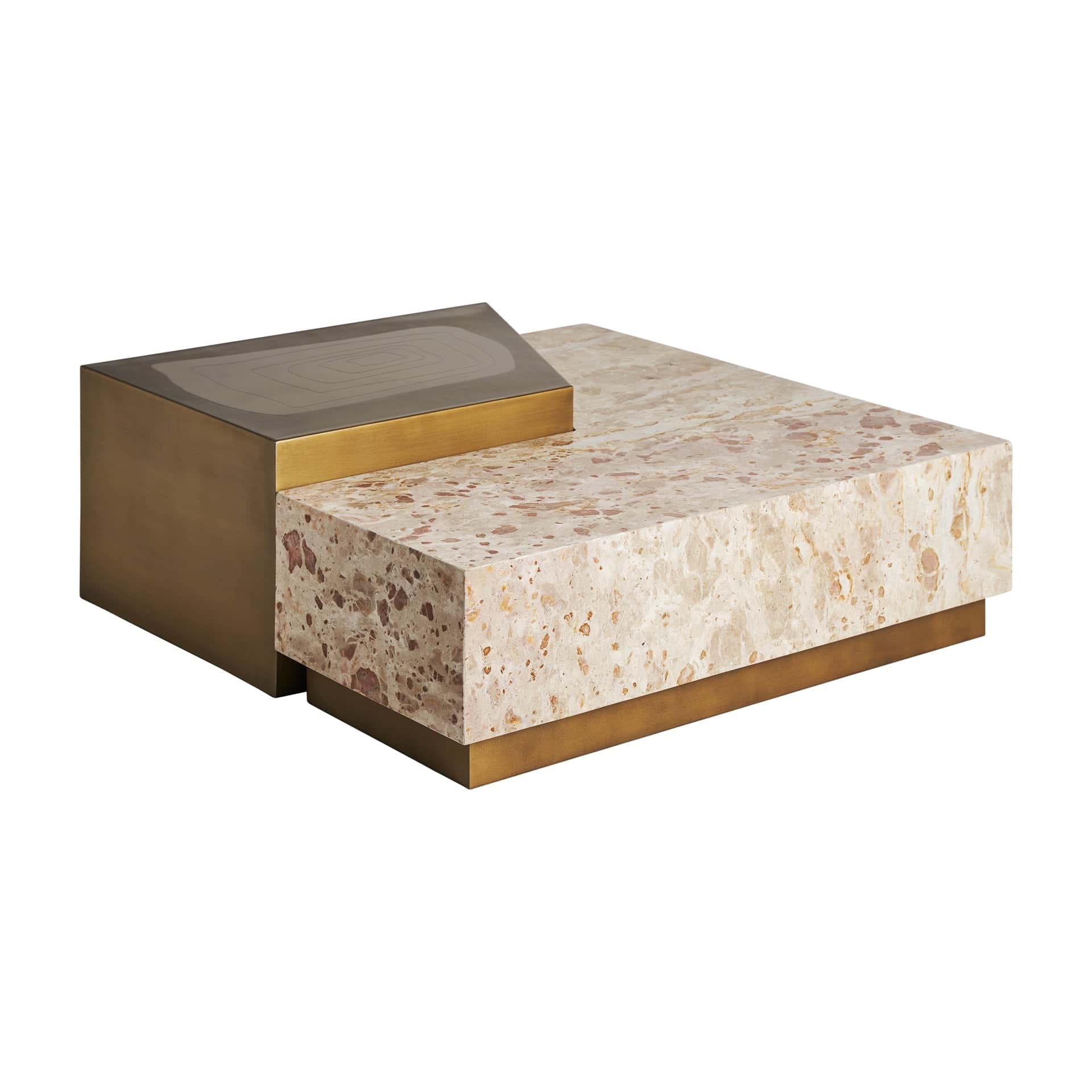 Eckiger Art Deco Couchtisch aus Weißem Marmor mit Gold