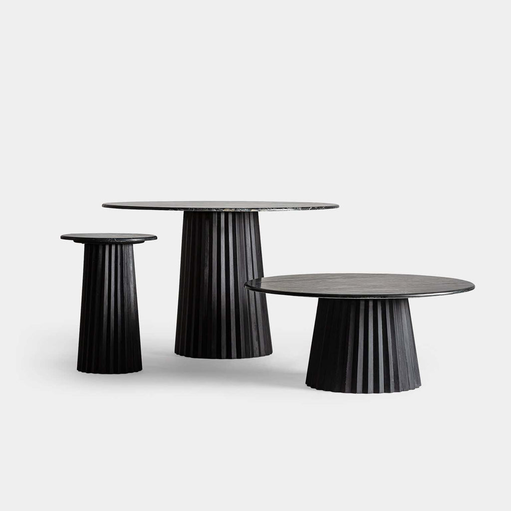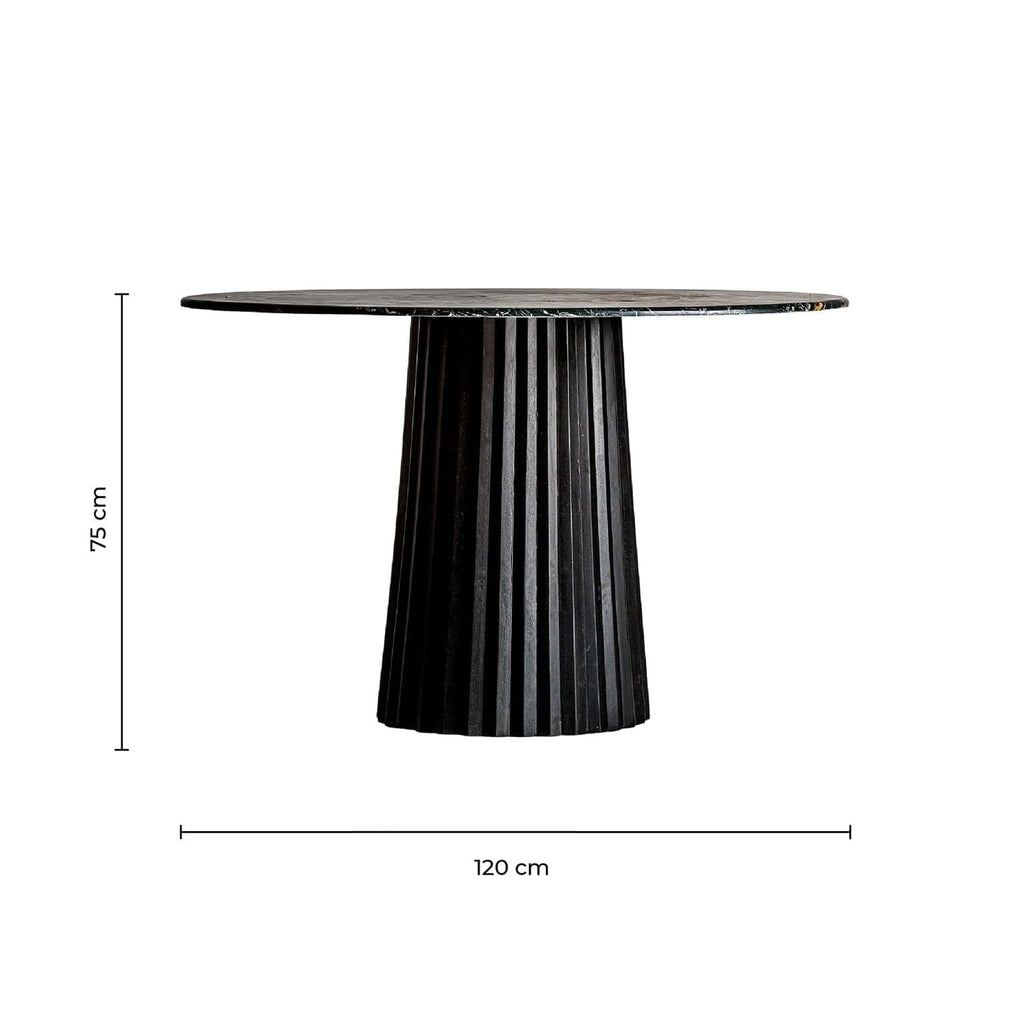 Plissé Esstisch aus Schwarzem Mangoholz & Marmor – VICALDESIGN