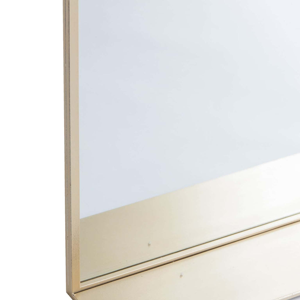 Unser eckiger Spiegel mit Goldrahmen und Ablage verkörpert den zeitlosen Glanz des Art Deco. Der goldene Rahmen verleiht ihm einen Hauch von Luxus, während die praktische Ablage Funktionalität mit Eleganz verbindet.