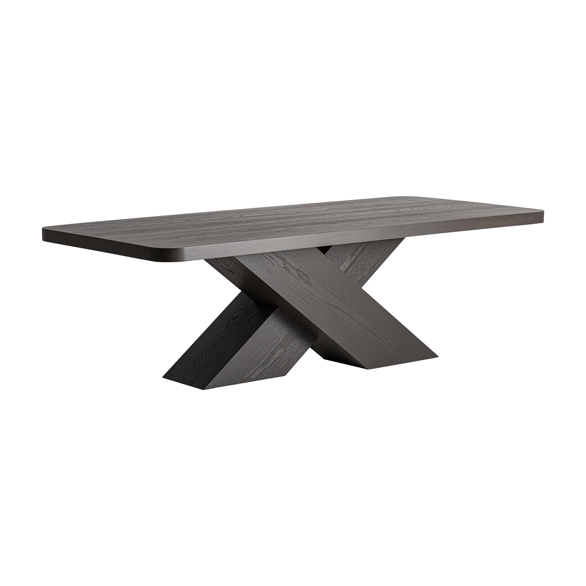 Der Esstisch von VICAL interpretiert Eichenholz auf moderne Weise und vereint klare Linien mit zeitgemäßem Design. Das schwarze Kreuzgestell verleiht architektonische Stärke, während die elegante Tischplatte jedem Esszimmer Präsenz und Raffinesse verleiht.