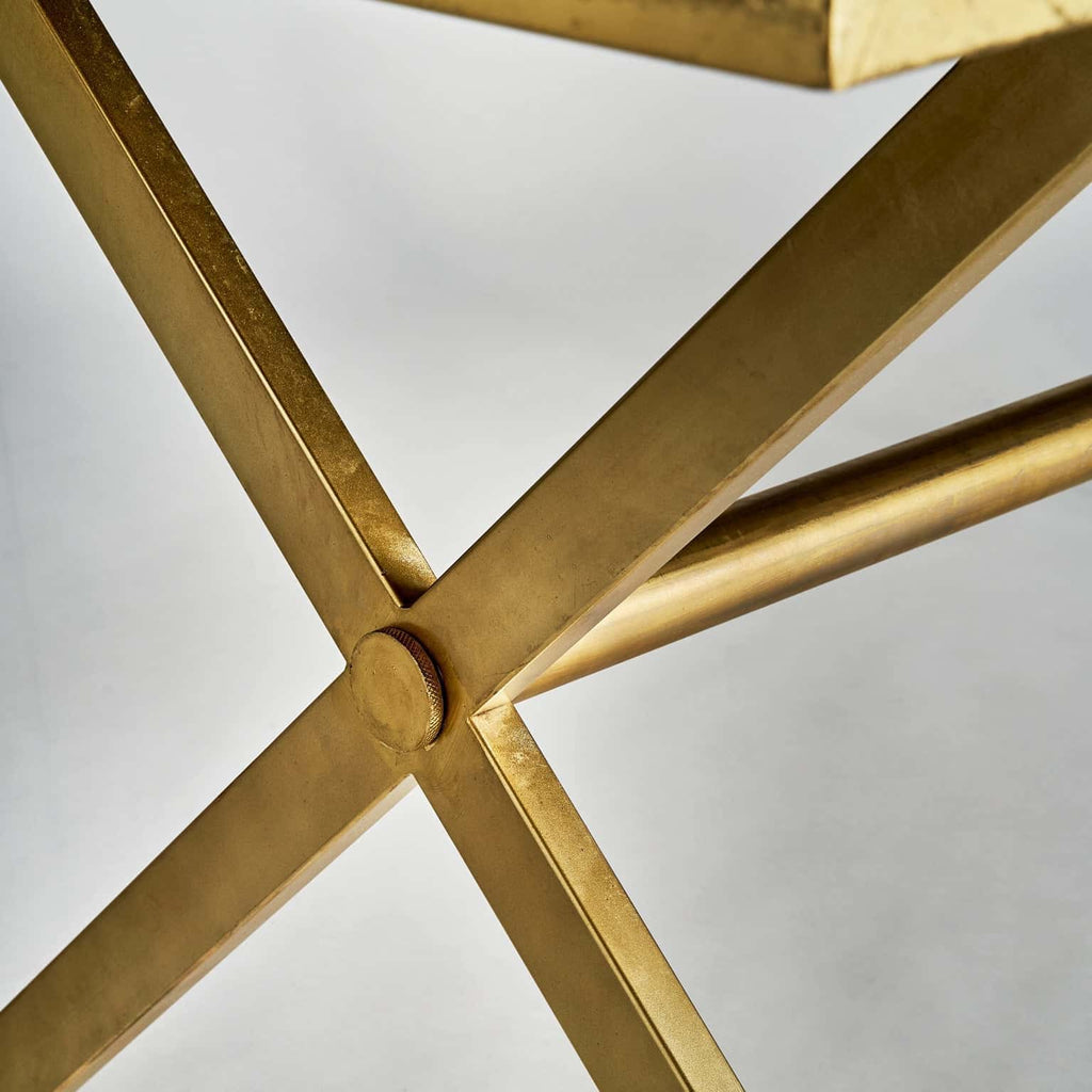 Schwarzer Esstisch aus Mangoholz kombiniert mit Gold