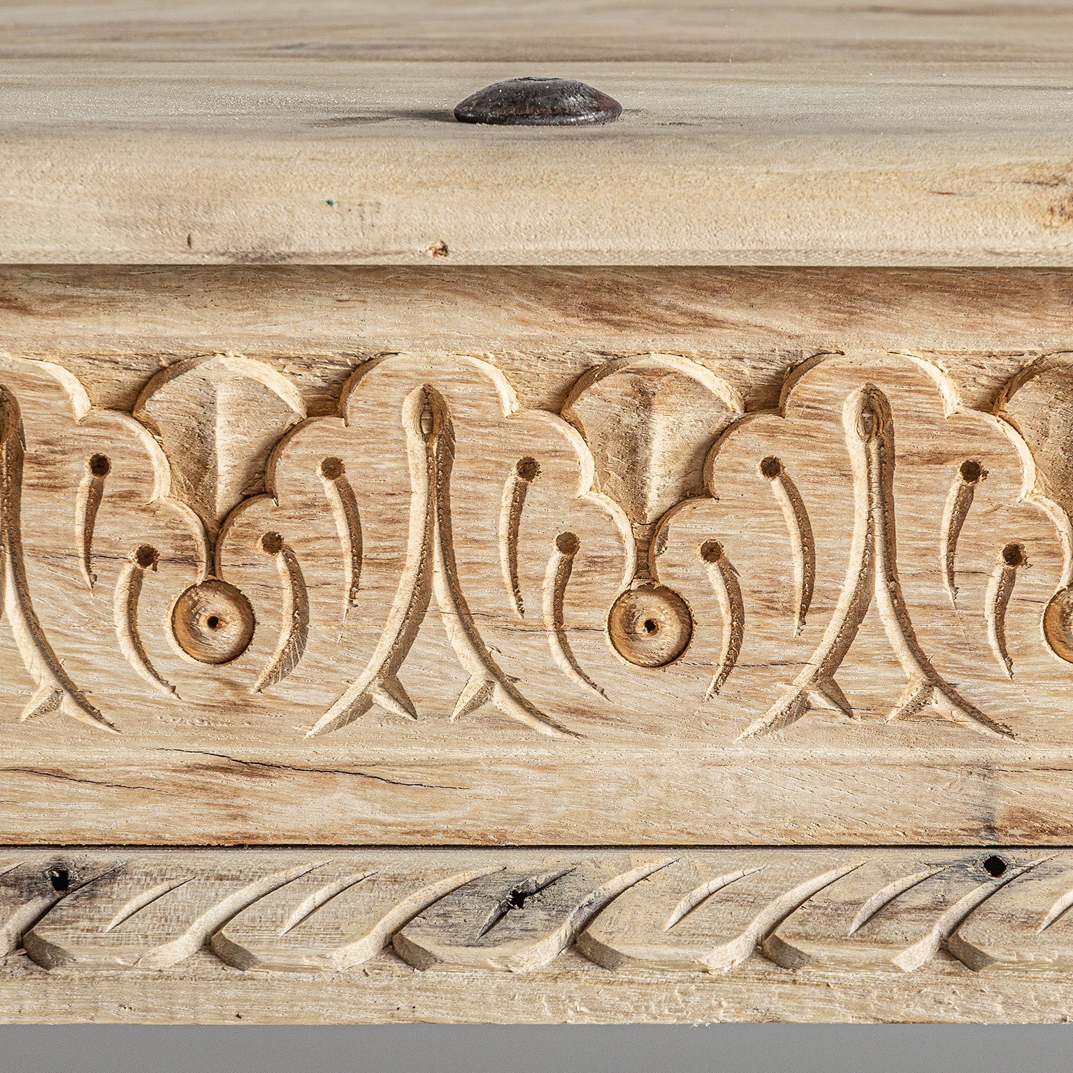 Handgefertigter Couchtisch aus Mangoholz mit Schnitzereien