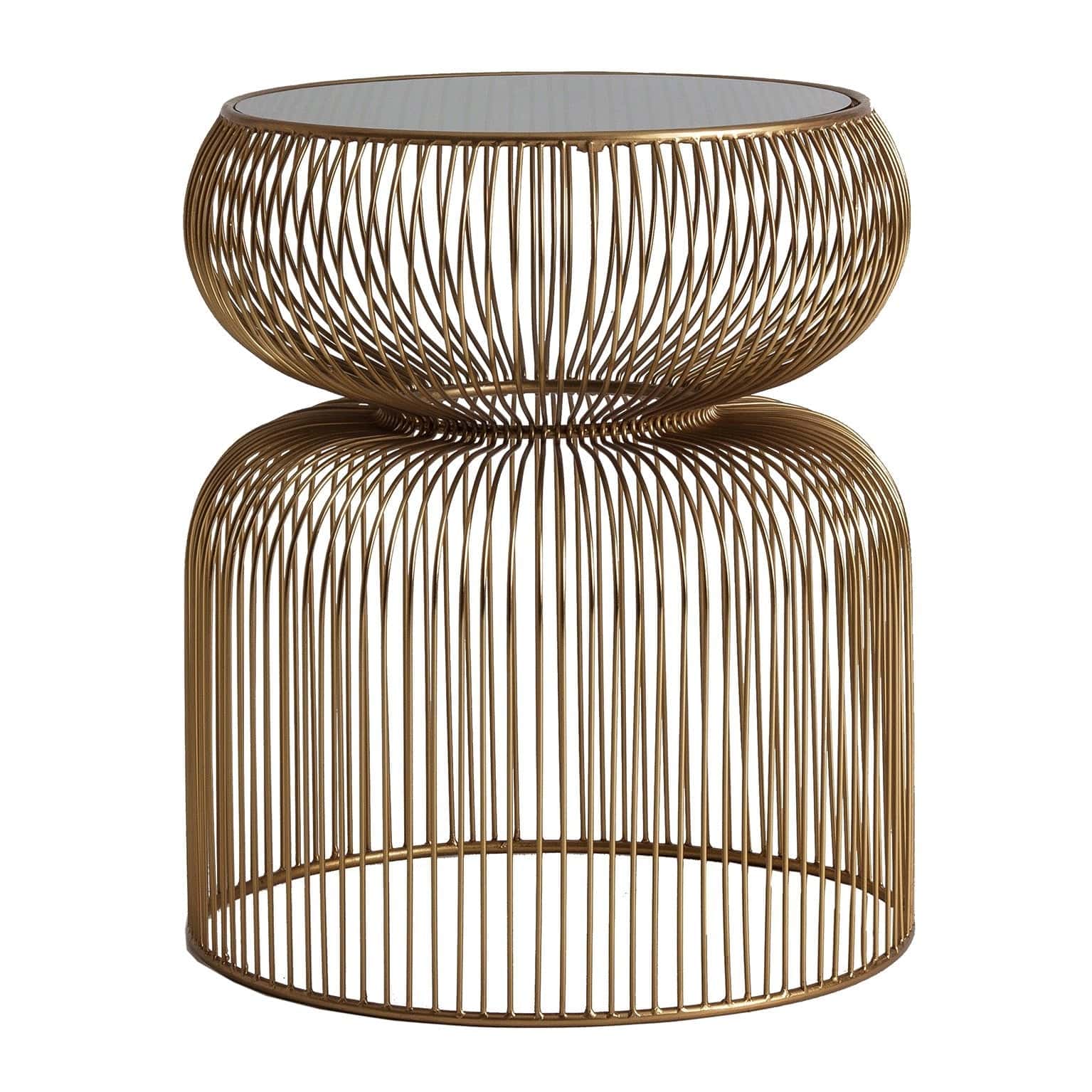 Runder Beistelltisch in Gold mit Schwarzer Glasplatte