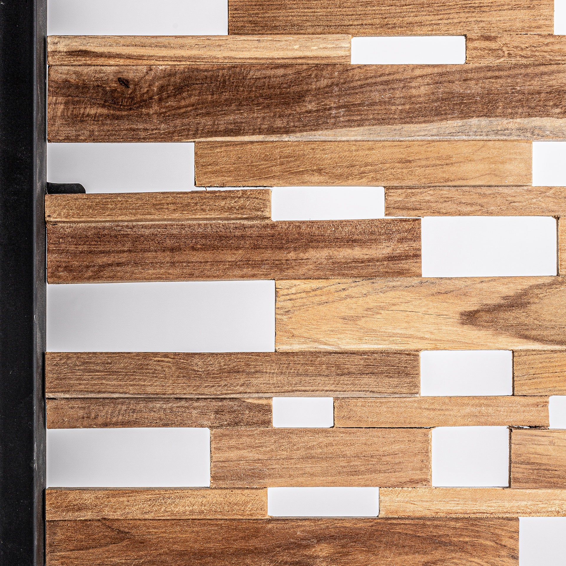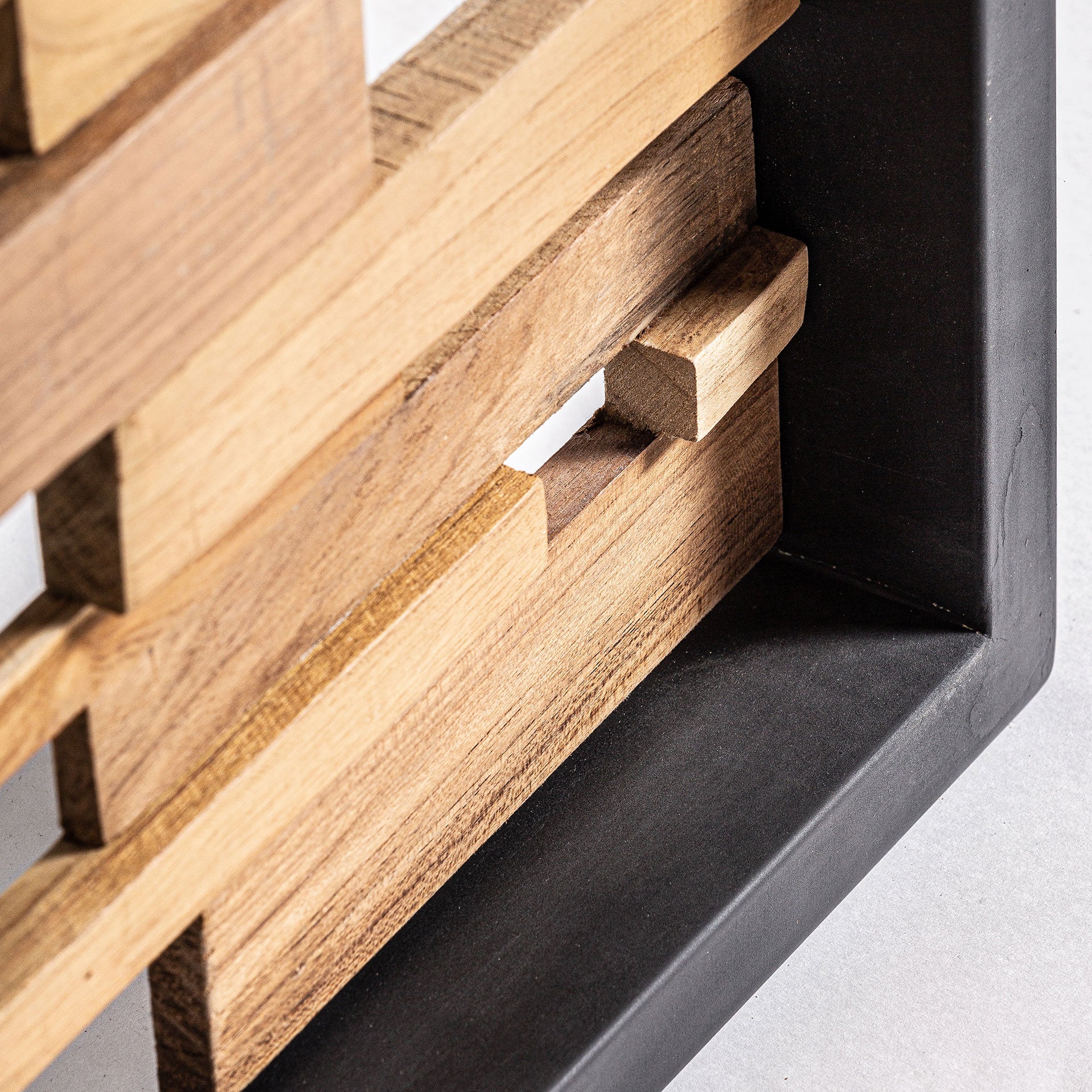 Handgefertigtes Wandpaneel aus Teakholz mit schwarzem Rahmen. Die natürliche Holzmaserung und die klare, reduzierte Formensprache schaffen elegante Tiefe und stilvolle Präsenz. Ideal für Wohnzimmer, Flur oder Office – jedes Paneel ist ein Unikat und setzt harmonische Akzente.