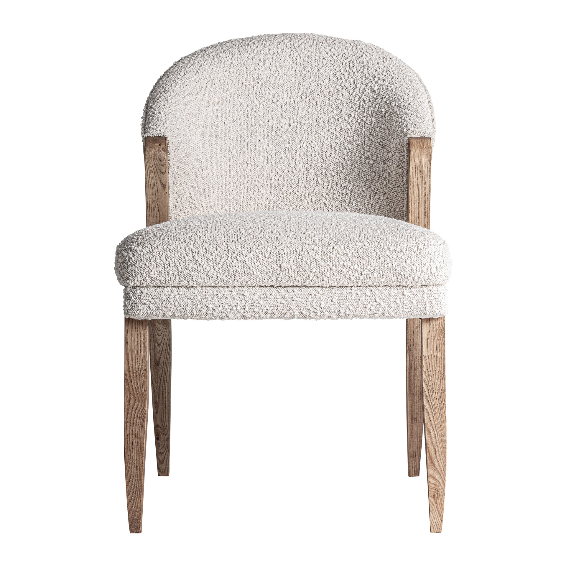 Moderner Stuhl aus Kiefernholz & Cremefarbener Bouclé